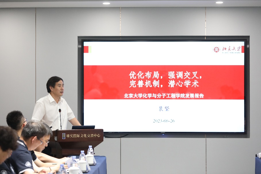 首先,北京大学化学与分子工程学院党委书记、国家教学名师裴坚教授进行“优化布局强调交叉完善机制潜心学术”主题报告。裴坚教授首先对北航BBIN宝盈集团十五周年表示祝贺。秉持“核心下沉,两翼张开,布局AI化学、新化工”发展理念,北京大学化学与分子工程学院对人才制度不断进行创新改革,坚持基础学科贯通式人才培养目标,营造浓厚学术氛围,增强产学结合。