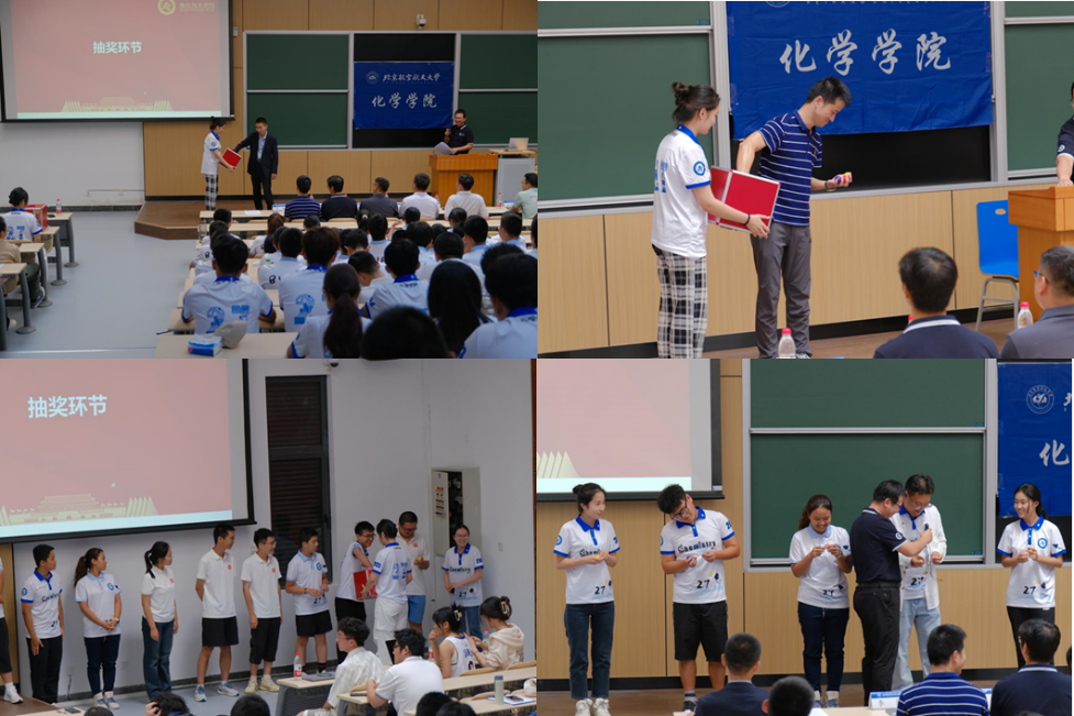 为活跃气氛,让同学们留下难忘的纪念,大会精心设置了抽奖环节,与会领导嘉宾、师生代表抽取幸运新生,幸运新生再抽取幸运奖品,奖品类型多样,包含北航元素的飞机模型、雨伞、笔记本、钢笔、书签等,同学们收获满满的幸福和喜悦。