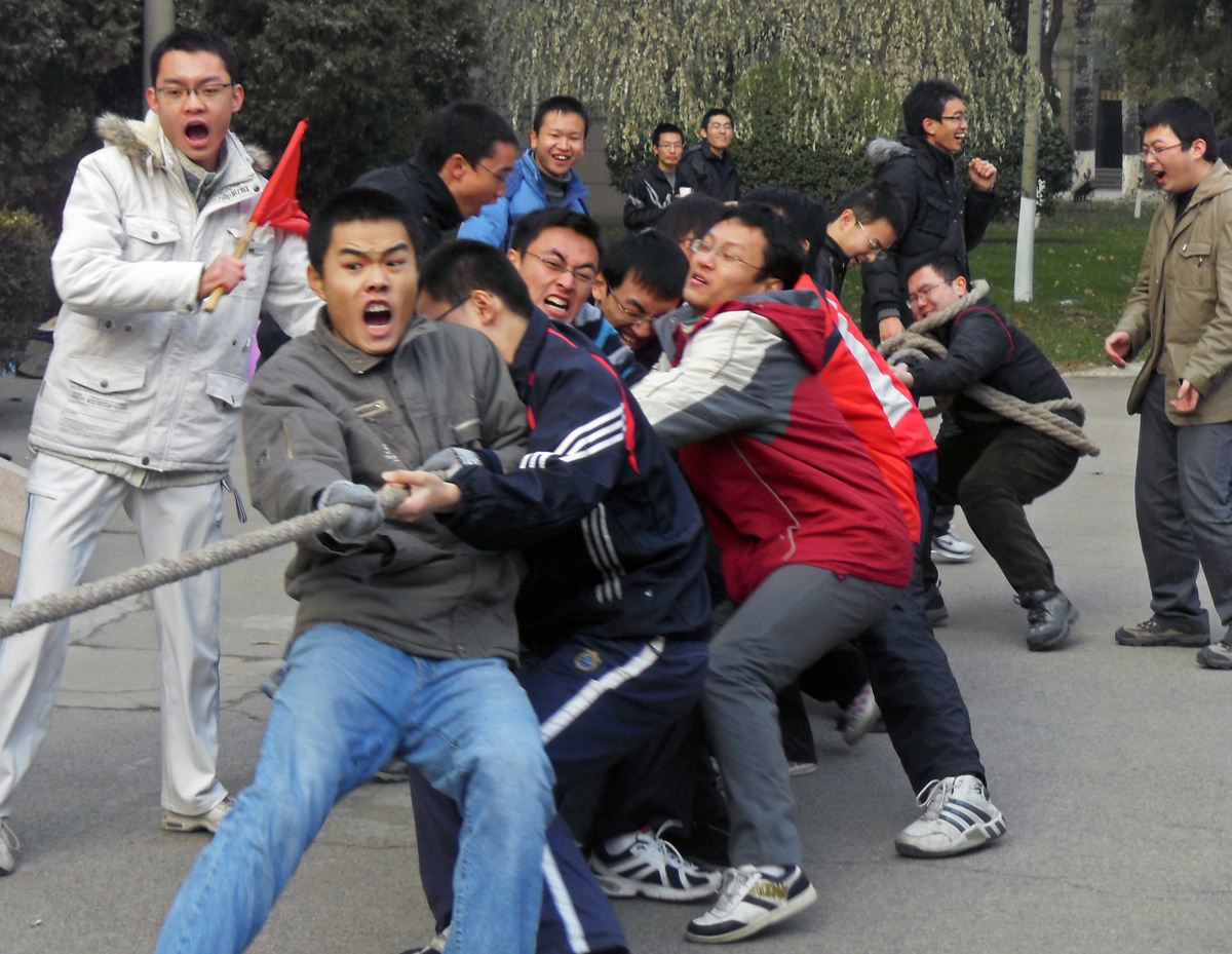 本次纪念活动包括拔河比赛和定向比赛两项内容。首先进行的是拔河比赛。大一、大二、大三是小班队,大四为大班队,每队9男2女,共七支队伍进行淘汰赛。抽签分为三组,其中一支轮空。大二环境班幸运轮空,直接晋级,大二化学班、大一化学班以及大一环境班分别以2:1的成绩战胜对手晋级决赛。决赛的四支队伍进行循环赛。经过激烈的争夺,大二化学班、大一化学班、大一环境班依次位列三甲。