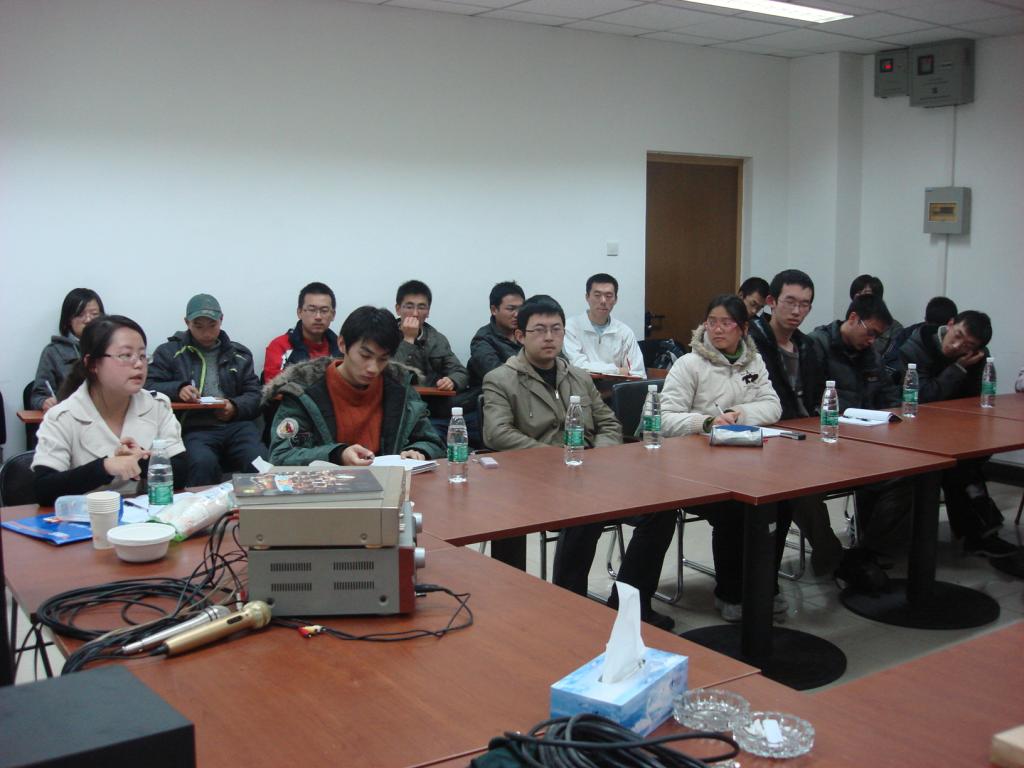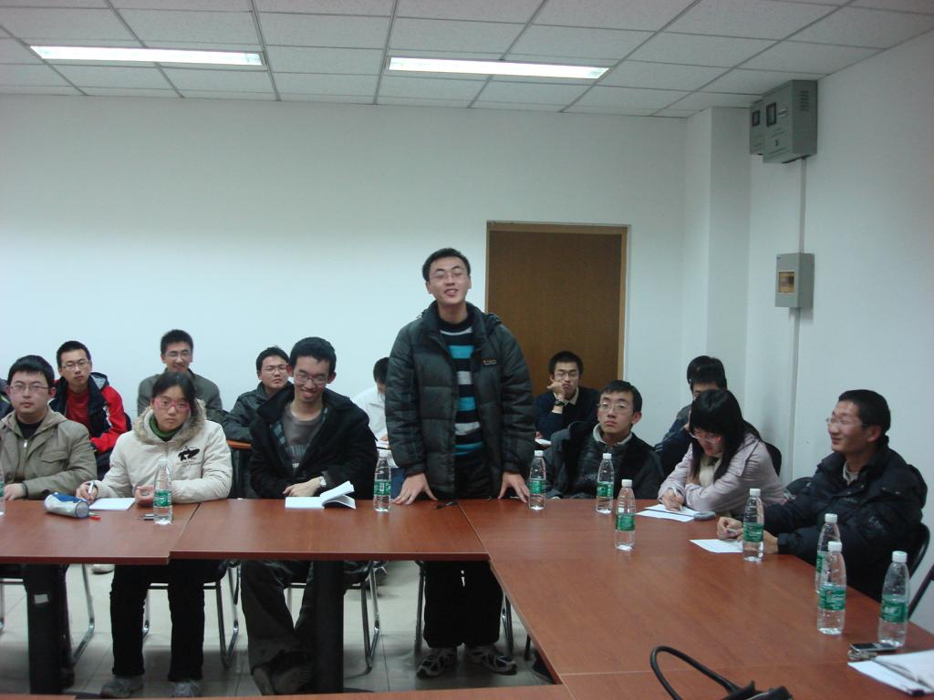 会议开始,各级辅导员向各位班主任汇报了各年级的工作状况和今后的工作计划。06级辅导员杨中甲老师主要就06级考研、出国和找工作同学的状态跟班主任进行了汇报,07、08级辅导员何涛老师就学生期中考试状态、科技竞赛准备情况作了详细汇报和总结。09级辅导员饶思圆老师就新生入学3个月来的学习生活状况尤其是军训回来后学生的思想动态和学习态度进行了汇报。