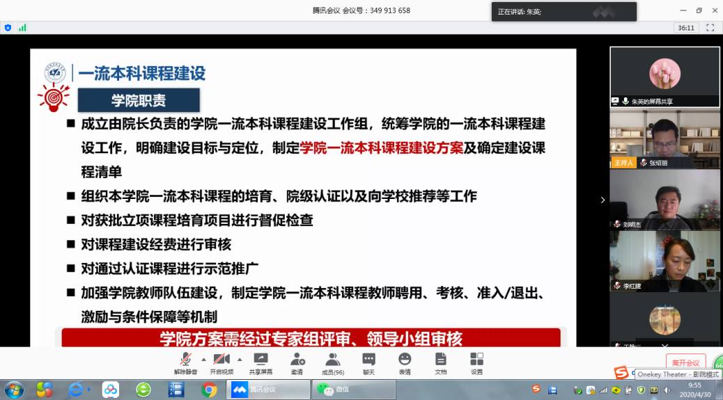 朱英介绍了学校一流本科课程建设方案,并就BBIN宝盈集团的具体安排做了说明。学院第一时间成立了一流本科课程建设工作组、院级认证专家组,并就学院方案制定及院级课程立项时间做了统筹部署,动员各位老师积极参评,把握时机。同时,朱英就学校、学院学期课程考核安排预案做了汇报。