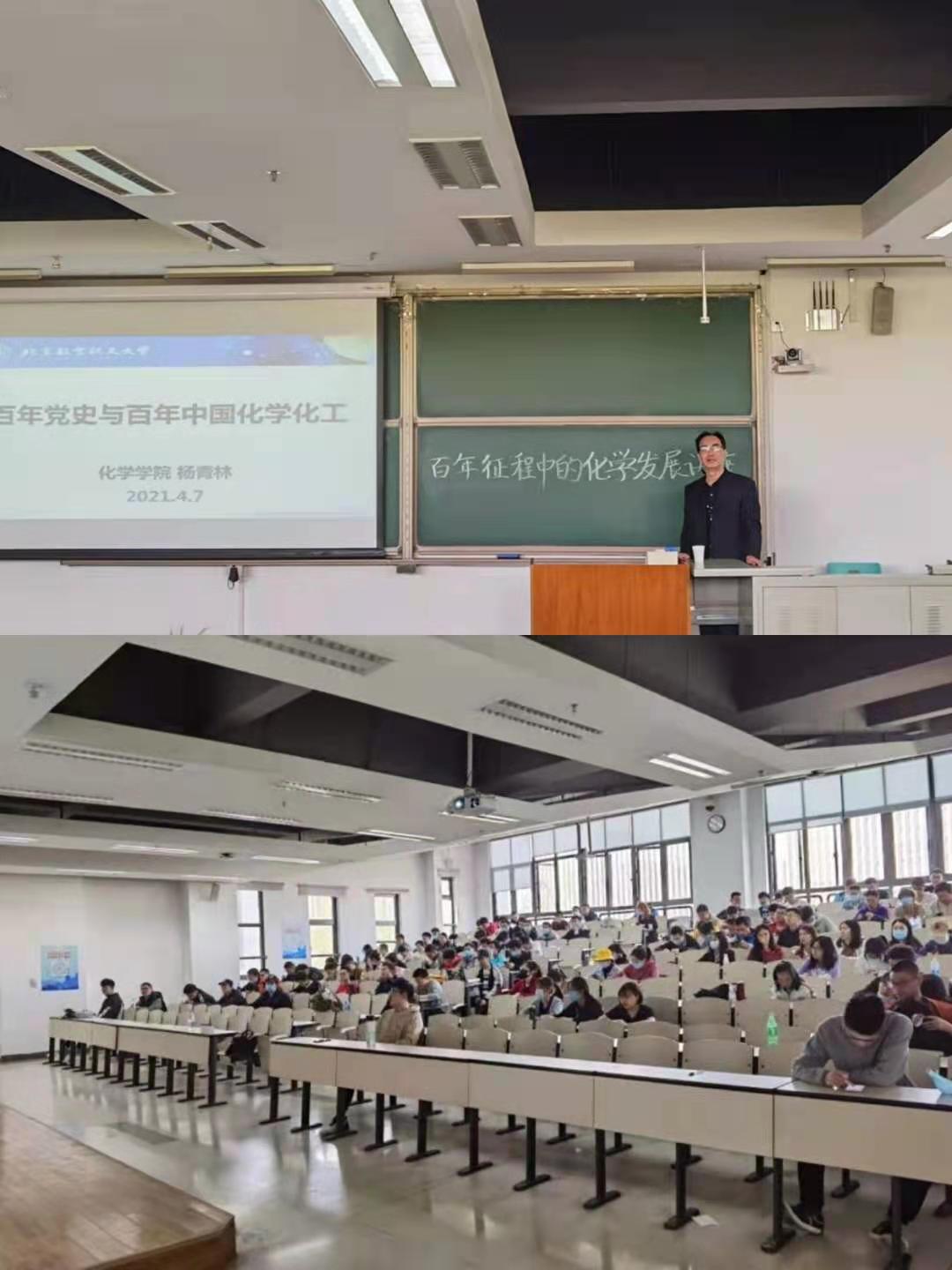 同一时间,学院邀请学院党委委员、立德树人优秀奖获得者杨青林老师在沙河校区J3-211为BBIN宝盈集团学生作题为“百年征程中的化学发展”主题报告。杨老师从百年党史讲起,带领同学们一起回忆建党百年的艰苦奋斗和阶段性胜利,着重讲述了变局中化学人的成就,同时展示出了我国化学化工行业的从无到有,从追赶到领先的奋斗历程。
