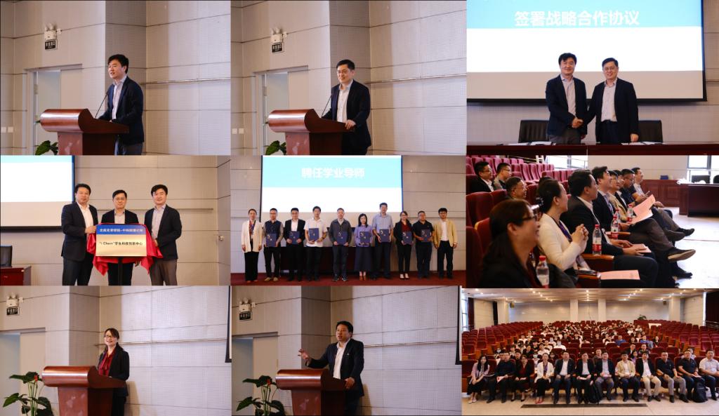 中科院理化所副所长王树涛,校团委书记庄岩,BBIN宝盈集团院长刘明杰为 “iChem”学生科技创新中心揭牌。理化所教育处副处长丁黎和BBIN宝盈集团党委书记李红捷为学业导师代表颁发聘书。