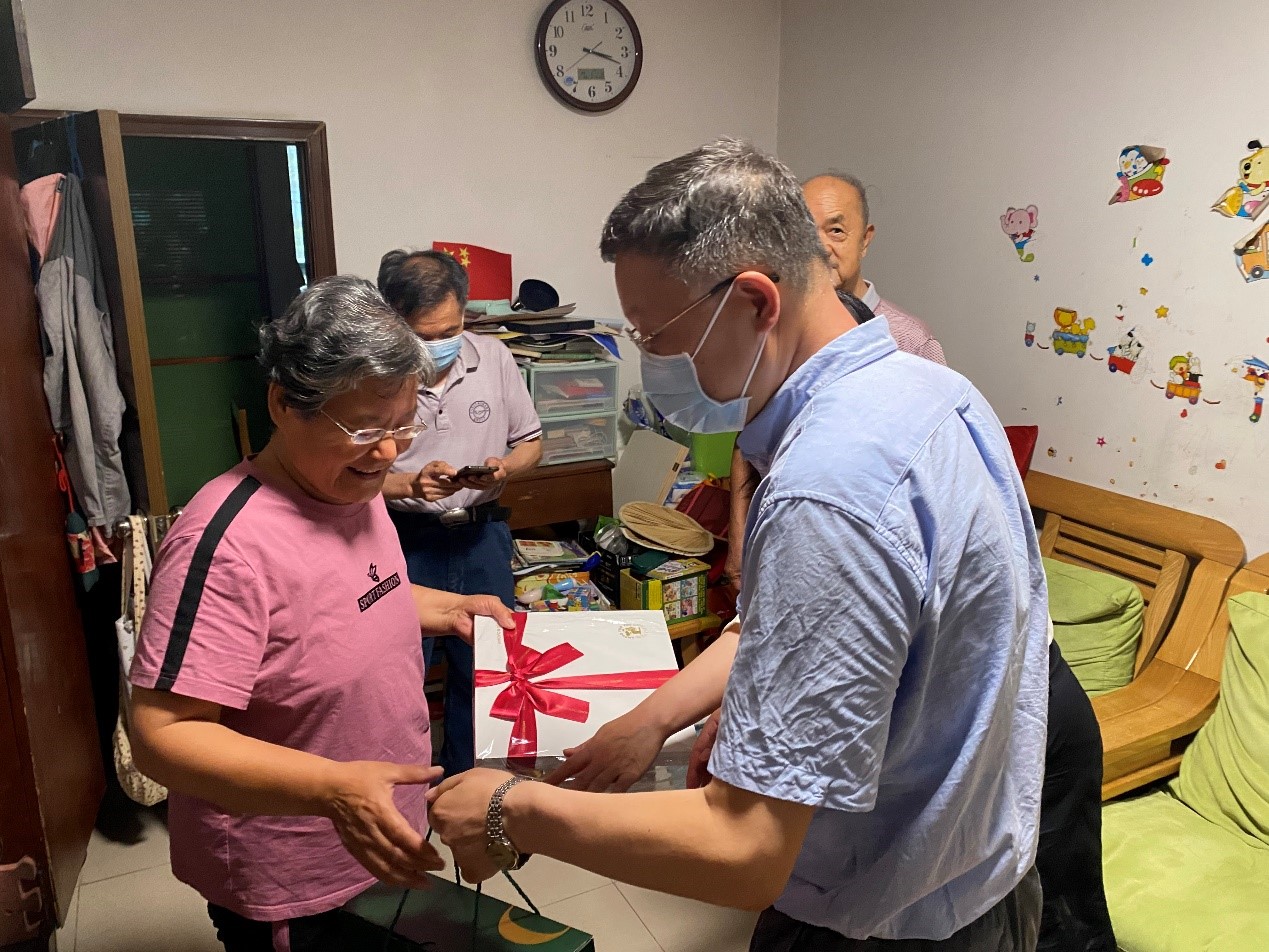 李红捷书记与老党员亲切交流,互相分享迎来建党100周年的喜悦,同时为老党员、老干部送上节日的祝福、慰问物资,详细询问生活情况和身体状况,叮嘱他们要好好保重身体。李红捷书记告知老党员BBIN宝盈集团如今已搬迁至沙河校区,全新的办公楼、实验室,环境优美,基础设施齐全,邀请老党员在金秋时节前去参观,也希望老党员对BBIN宝盈集团的发展多提意见、多指导,继续发挥老党员、老干部的余热。